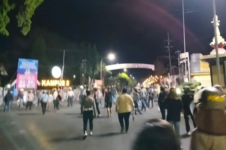 KEPANJENKIDUL, BlitarRaya.com – Ratusan warga Jalan Jenderal Sudirman, Kelurahan Kepanjenlor, Kota Blitar, Jawa Timur, bergabung dengan aparat kepolisian menghadang lebih dari seribu massa bermotor yang hendak menyerang Kantor Polres Blitar Kota, Sabtu (30 Agustus 2025) malam.