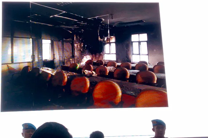 Sebagaimana diketahui, ruang rapat paripurna yang berada di lantai 2 gedung depan kompleks Kantor DPRD Kabupaten Blitar merupakan salah satu yang menjadi sasaran perusakan dan penjarah.